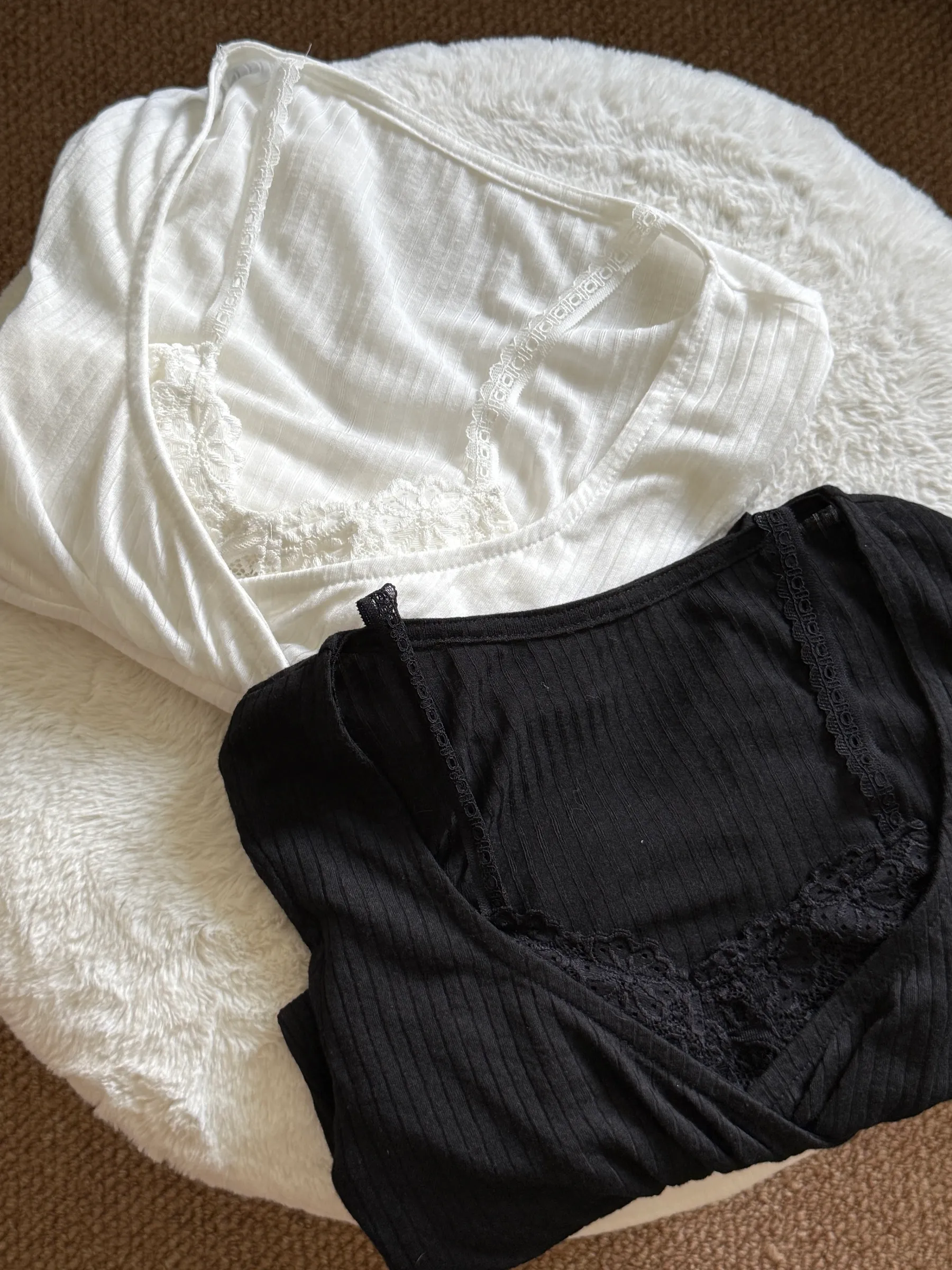 Lace Peek Ribbed Top 小心机蕾丝假两件上衣 (White) Ratings: 0 - 0 votes